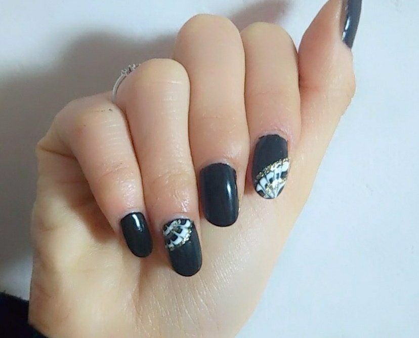 ハンド ピーコック ホワイト ブラック ゴールド Cafe Nail 響のネイルデザイン No ネイルブック